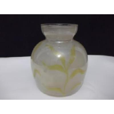 Descritivo: Vaso em Vidro Moldado, Translúcido e Opalinado em Amarelo, assinado Degue. Perfeita combinação de forma, cores e volúme. Decorado com caule e folhas.